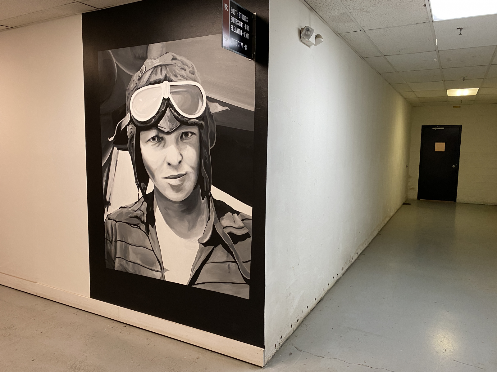 Amelia Earhart Mural "Amelia Earhart" Image 3 of 5 Amelia Earhart Mural, CCIC. This mural is located inside the Circle City Industrial Complex building in Indianapolis. November, 2020