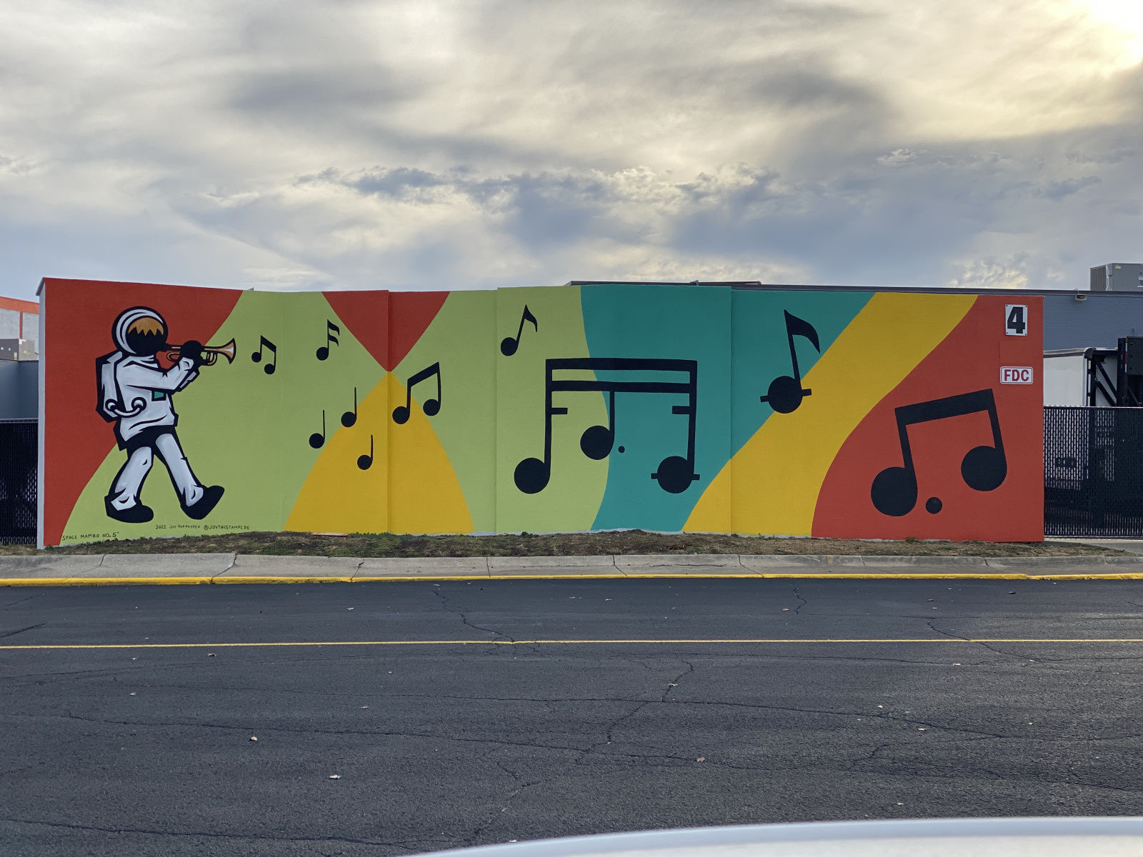Mambo No. 5 Mural, Window to the World, Indianapolis. This mural as well as the property's proprietary design cover the service walls of the Window to the World building in Indianapolis. All together, it was a 45 square foot project, with Bean playing music, at the owner's request, on an east-facing wall. October, 2022