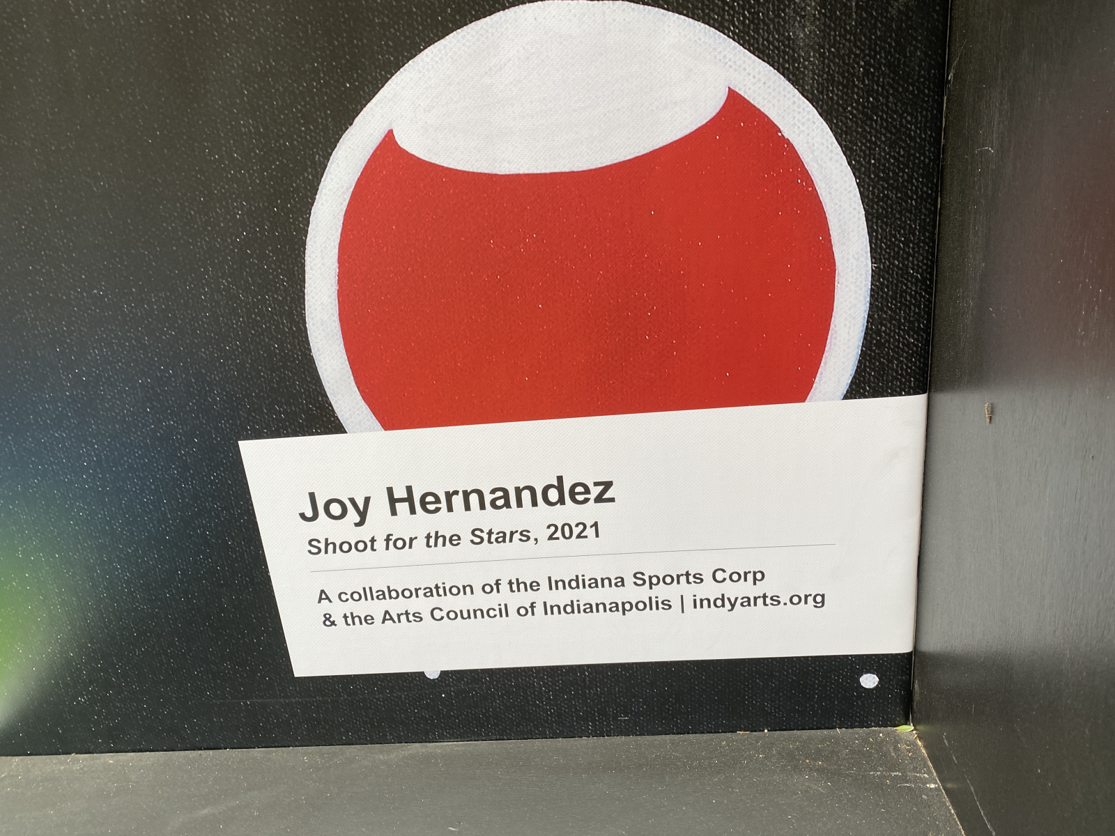 Shoot For the Stars was commissioned as a "Court Mural" for the Arts Council's SWISH NCAA March Madness programming. The backing piece is a vinyl reproduction of the "Shoot for the Stars" canvas painting, while the platform was hand painted. March, 2021