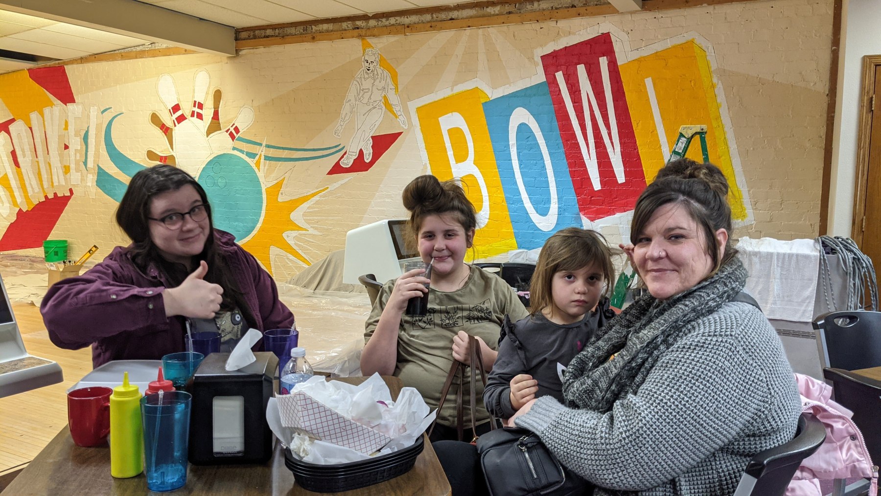 Spoon River Bowl "Spoon River Bowl" Image 9 of 10 Spoon River Bowl. Designed by Joy Hernandez and painted by Thomas Washburn and his family, this mural set includes signage at the Spoon River Bowl in Wyoming, Illinois. January, 2022